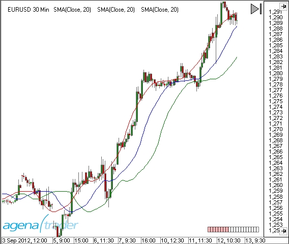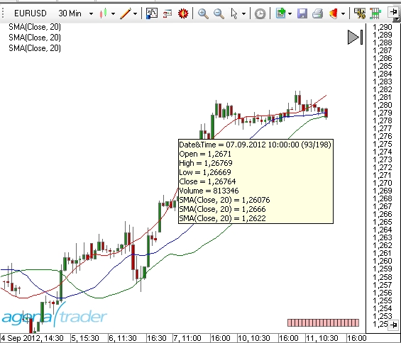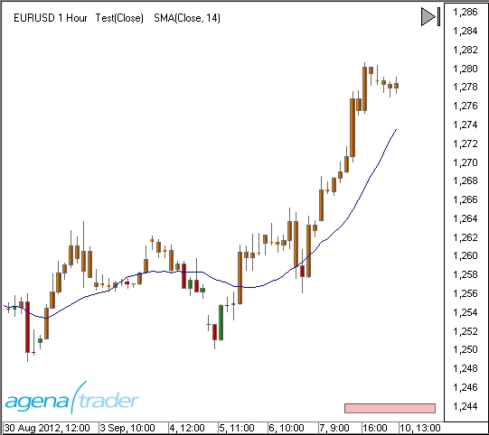 Current bar is a method of indexing bars used in the OnCalculate() method. If a chart contains 500 bars and an indicator is to be calculated on the basis of these, then AgenaTrader will begin calculating from the oldest bar. The oldest bar receives the number 0. Once the calculation for this bar has been completed, the OnCalculate() method is called up for the next bar, which in turn receives the number 1. This continues until the last bar, which receives a value of 500.